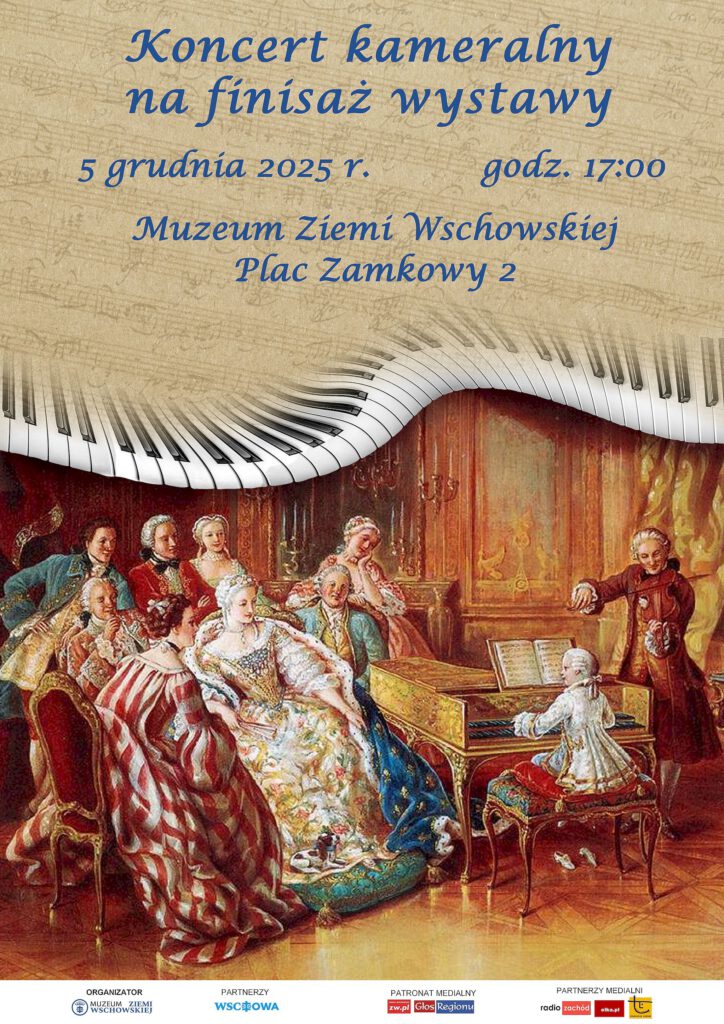 Muzeum Ziemi Wschowskiej serdecznie zaprasza na kameralny koncert fortepianowy towarzyszący finisażowi wystawy czasowej: ,,Polski Kopciuszek-wnuczka starosty wschowskiego królową Francji. W 300. rocznicę zaślubin Marii Leszczyńskiej.” Koncert odbędzie się 5 grudnia 2025 r. o godz. 17:00 w siedzibie MZW przy pl. Zamkowym 2. Podczas występu usłyszą Państwo m.in. utwory Wolfganga Amadeusza Mozarta w wykonaniu uczniów szkół muzycznych oraz pani Anny Muszkiety. Wydarzenie jest inspirowane koncertem ośmioletniego Mozarta na dworze wersalskim z grudnia 1764 r.